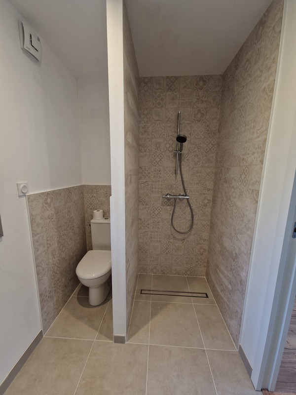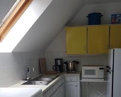 Cuisine : 3 feux gaz, une plaque électrique, un frigo, un lave-vaisselle, évier.